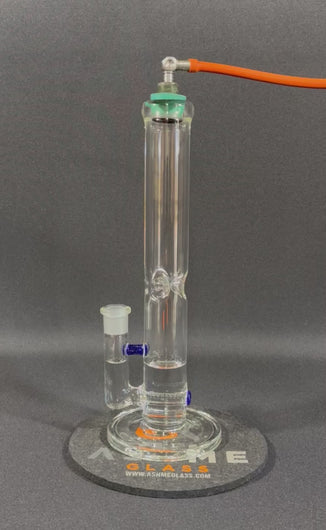 This mini tube is made on 45x5mm tubing to have more flow for the 18mm XThick uber joint. TAG Blue Blizzard is the bridge and name stamp color. Comes with free 18mm 1hole clear slide, or hit me up for a mat instead.