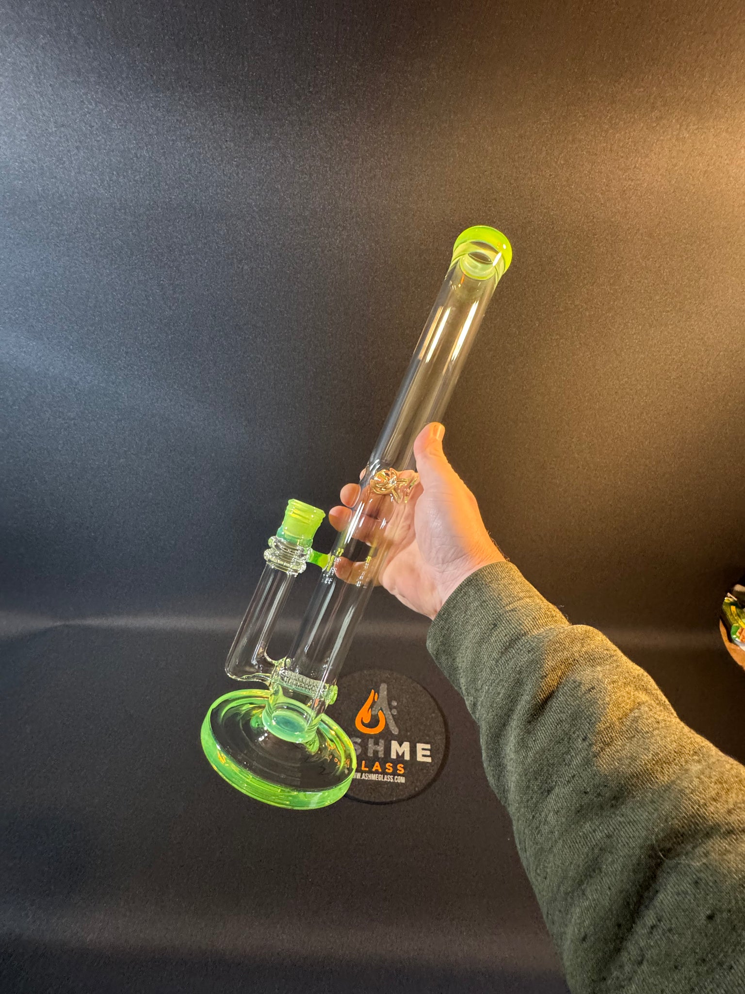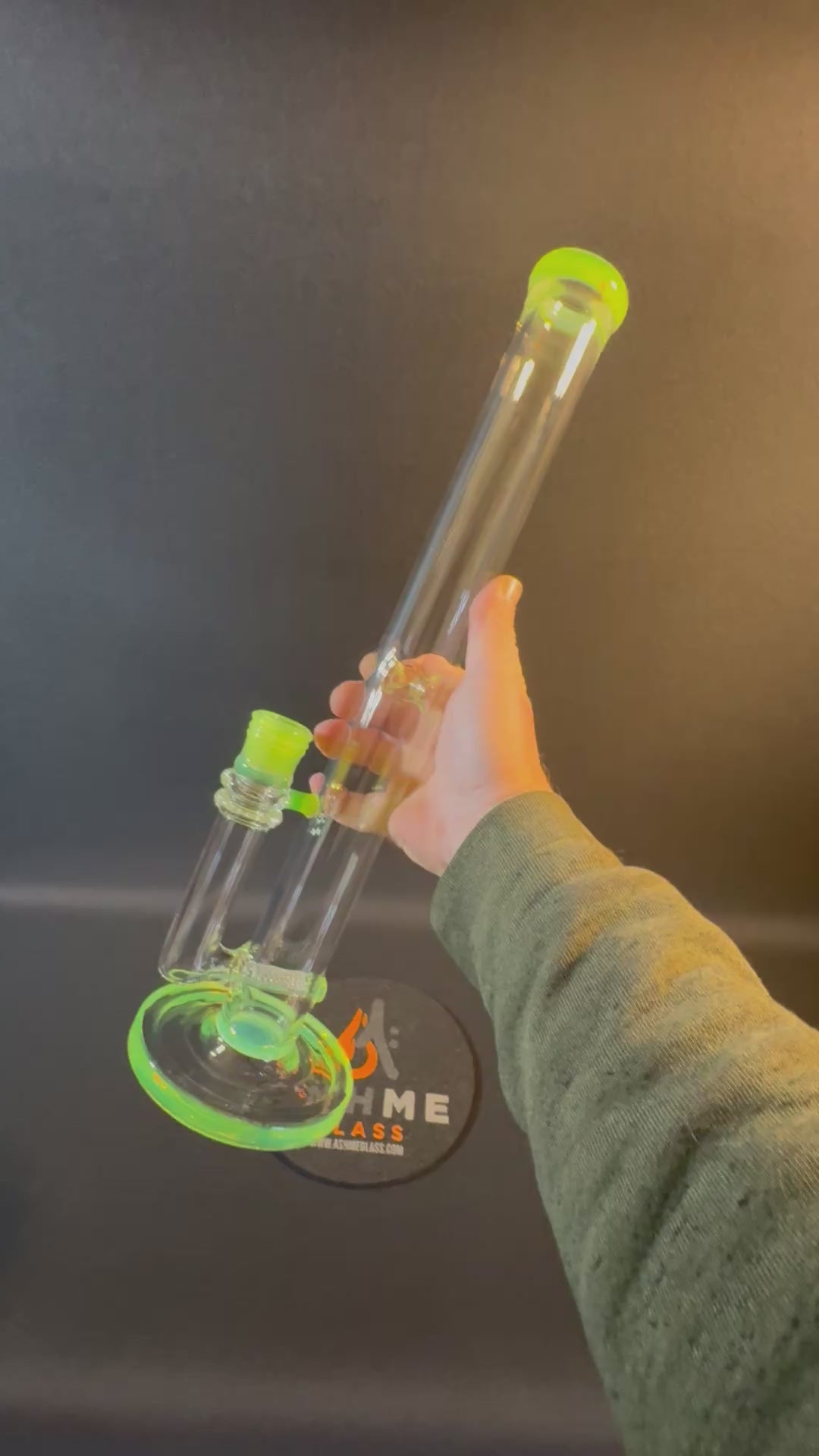 This is a full accent of Green Slyme. It is a super bright green with opalescent white mixed in. It has a hand made 18mm female and is about 18” tall.