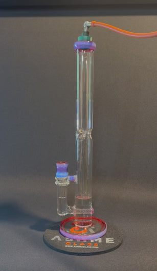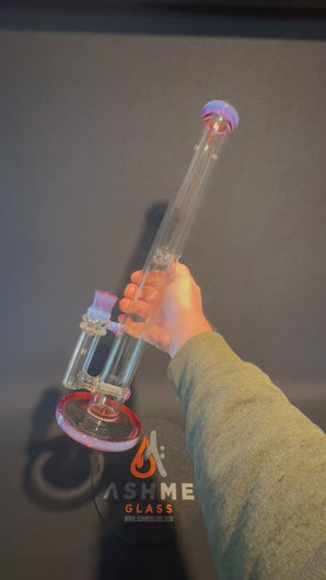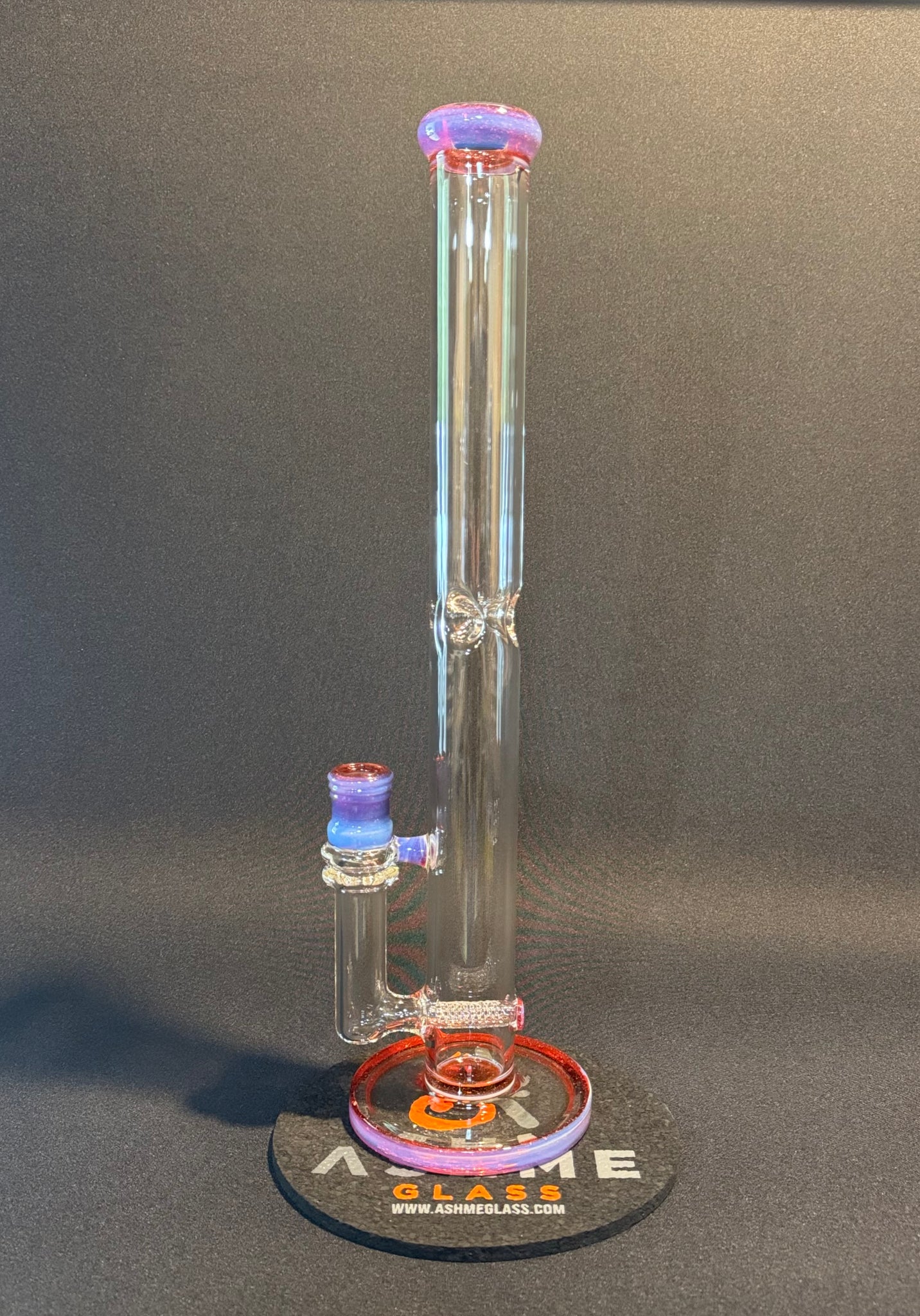 Ghost is so great for laying on top of colors! This one is Red Blizzard from TAG. 60hole tube about 18” tall. 45mm tubing and full accent on mouthpiece, joint, bridge, foot, ring seal, base lip and name stamp.